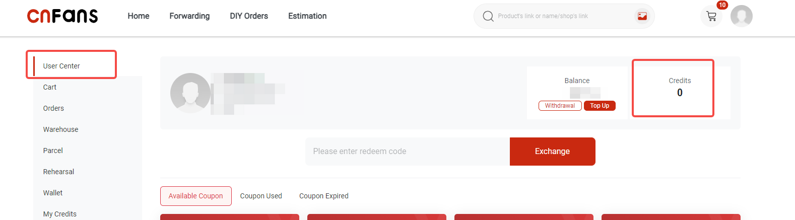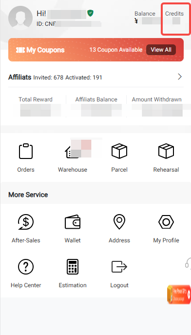 用户成功在网站支付运费后,就可获得积分奖励(按照实际支付金额发放)。1CNY 运费= 1 Credit。