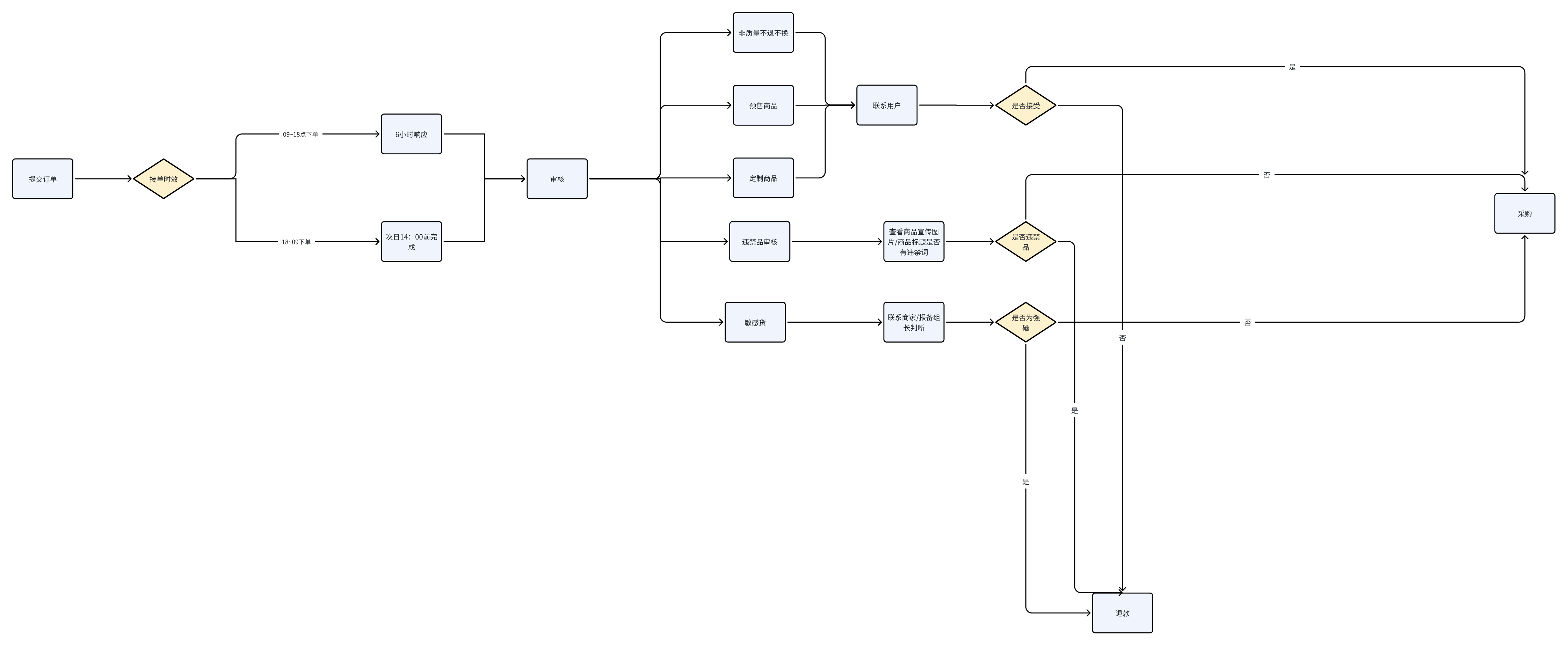 商品审核时效:接单当天24:00之前并在采购平台申请退款。