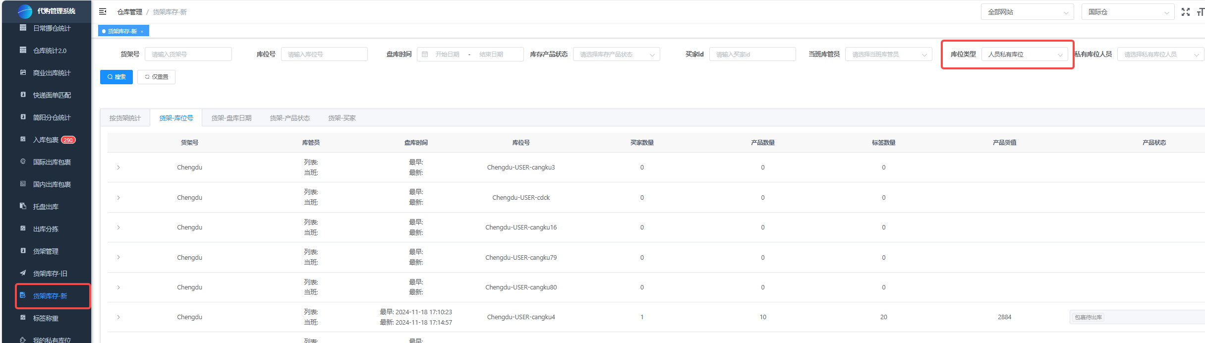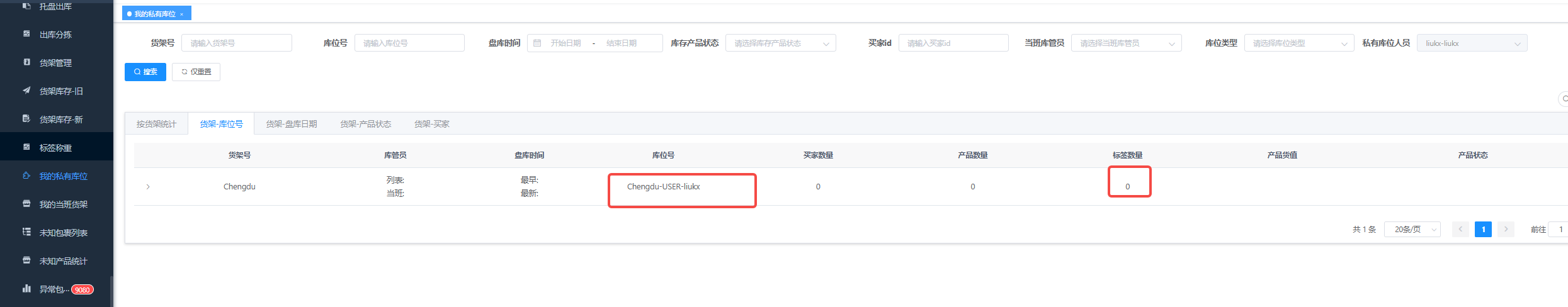 - 仓库管理 - 我的私有库位:每个人都可以看到自己的临时库位。