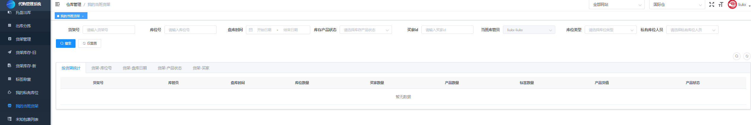 - 仓库管理 - 我的当班货架:每个人都可以看到自己当前当班的货架。