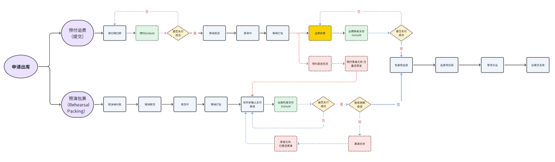 注意:客户支付了预付的费用后,仓库打包好了之后准备发货,才发现没渠道,物流就会重选渠道生成一个预演包裹。
