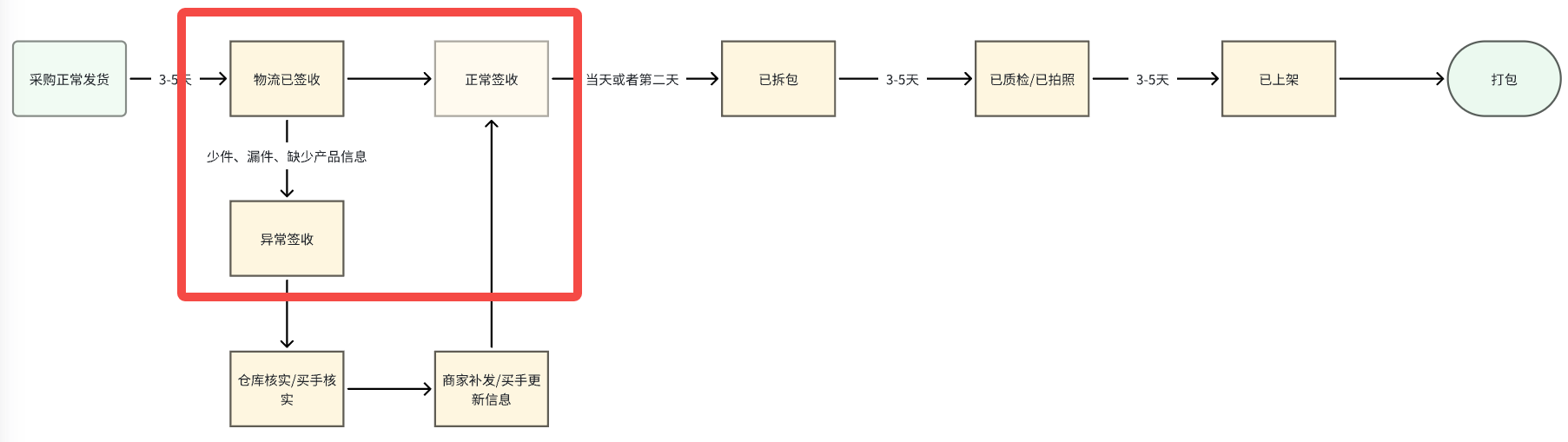 在客户端没有该商品的呈现(即该商品在客户端消失了,因为该商品的买家ID变成了1) (以上两种场景均会由买手团队去核实异常并处理(联系商家补发或者补充商品信息),联系商家补发的商品同样在3-5天左右到仓,需要补充信息的商品时效较短。)