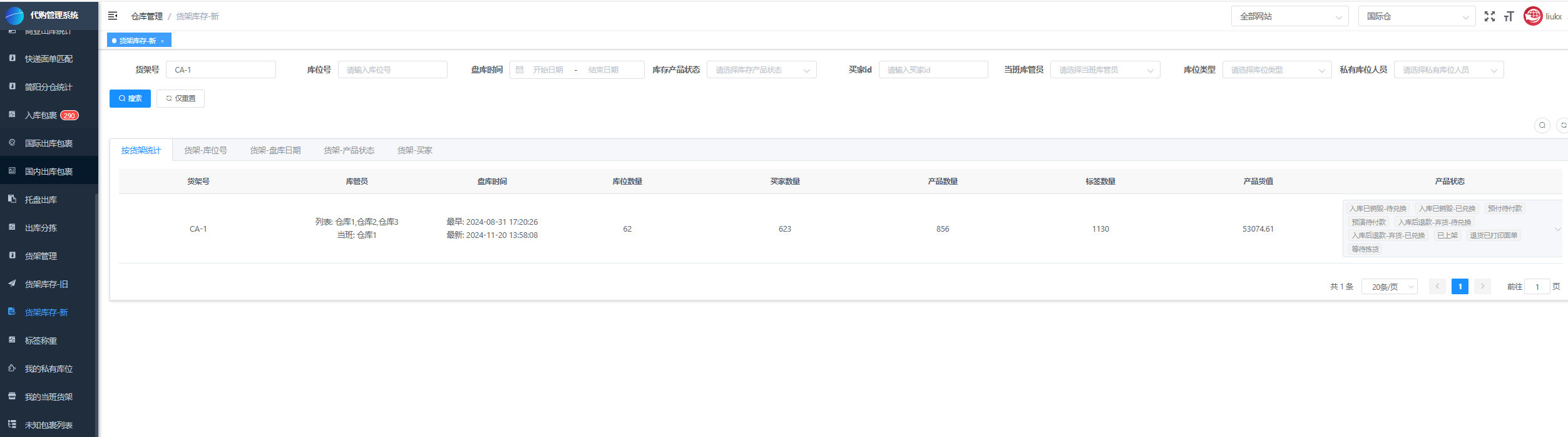 - 按货架统计:以货架的维度来看整体的库存情况。