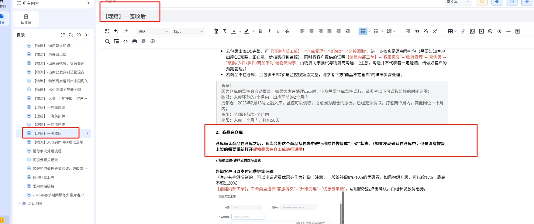 签收后商品质量问题损坏内部工单提交以及邮政退回后的处理内容更新